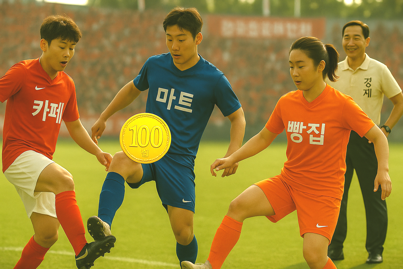 축구공(돈)이 경기장(경제)을 계속 굴러다니면 선수(가게, 회사, 사람)들이 계속 움직이고, 경기가 활발해져요!